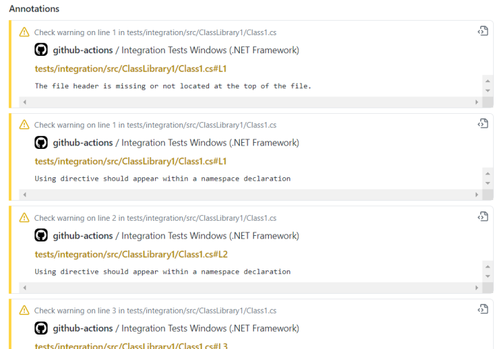 This example shows how to report issues as annotations to GitHubActions build using the GitHubActionsBuilds alias: